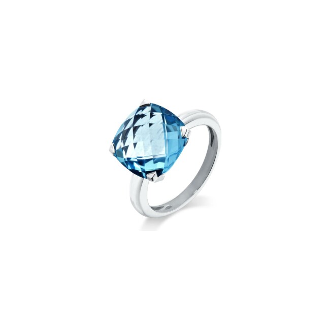 Poppy Blue Bague Cesare Pompanon Poppy Blue en or blanc et topaze swiss blue, grand modèle