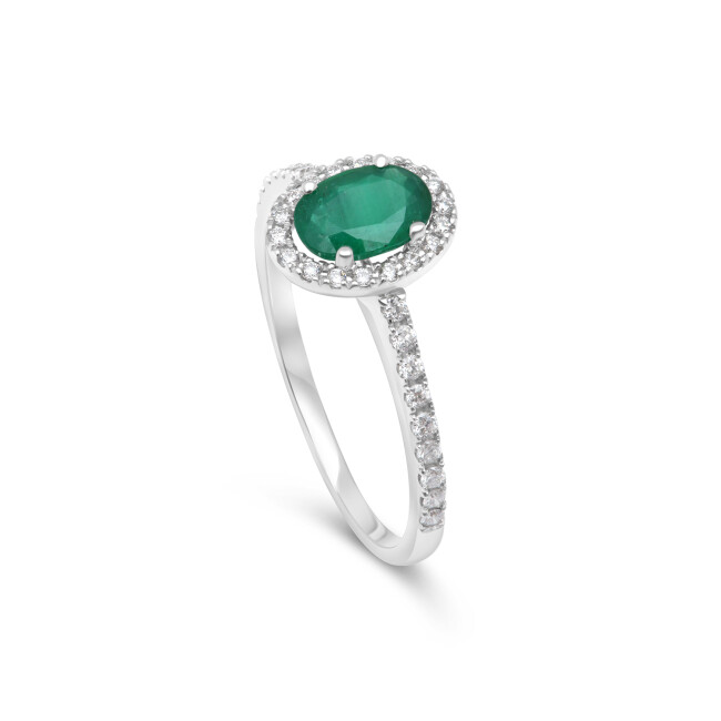 Bague San Marco en or blanc, émeraude taile ovale et entourage diamants