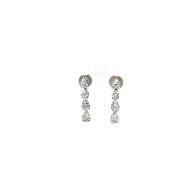 Boucles d'oreilles pendantes 4 poires en or blanc et diamants