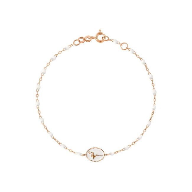 Bracelet Gigi Clozeau Flamant en or rose et résine blanche, taille 17cm