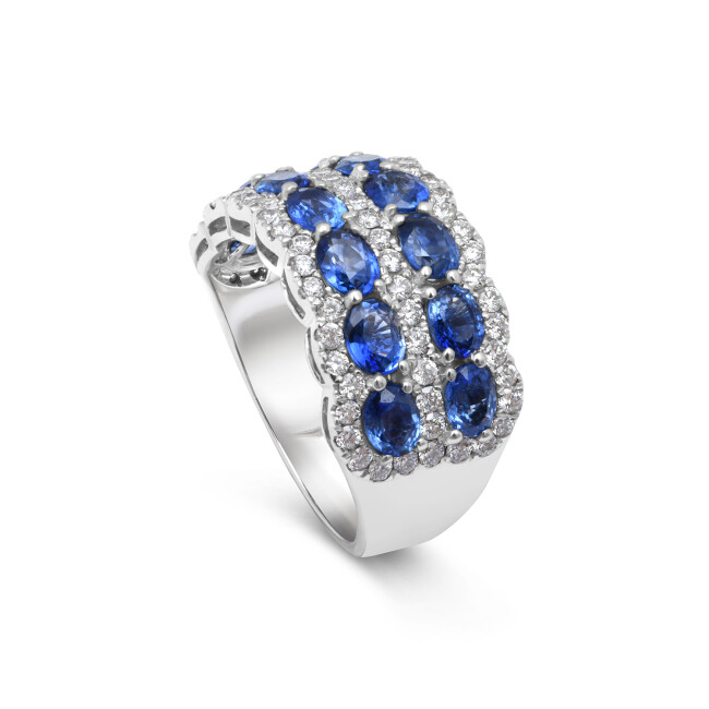 Bague Rialto en or blanc, saphirs taille ovale et diamants