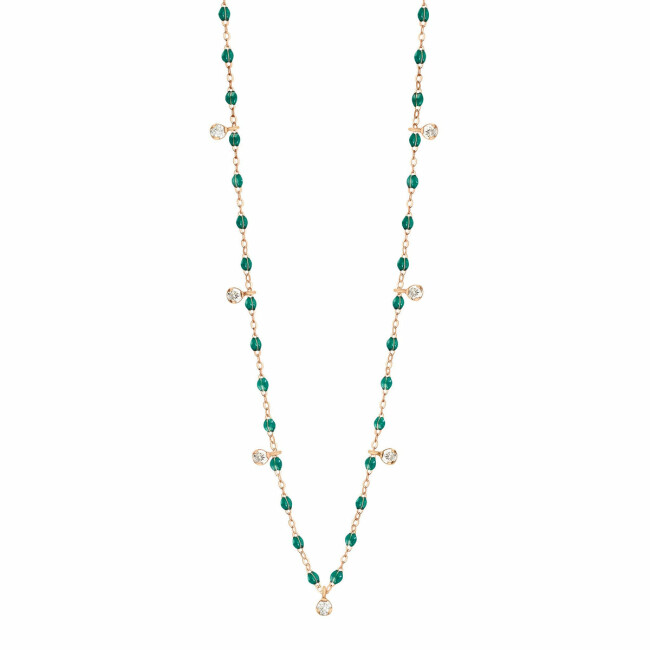 Collier Gigi Clozeau Gigi Suprême en or rose, résine vert émeraude et diamants, 50cm
