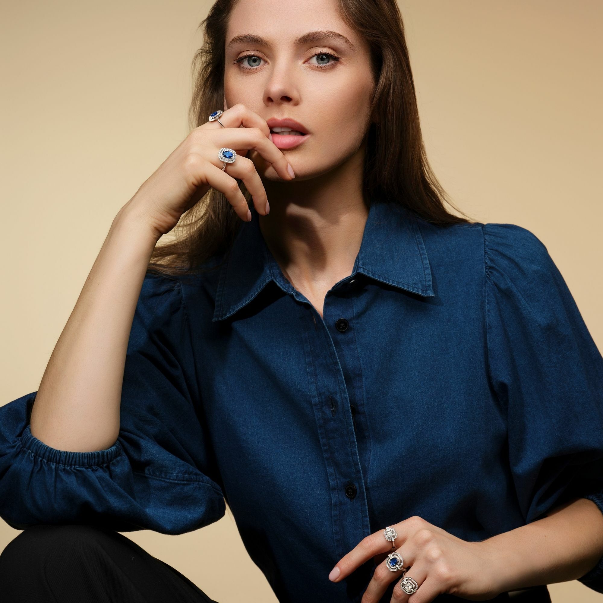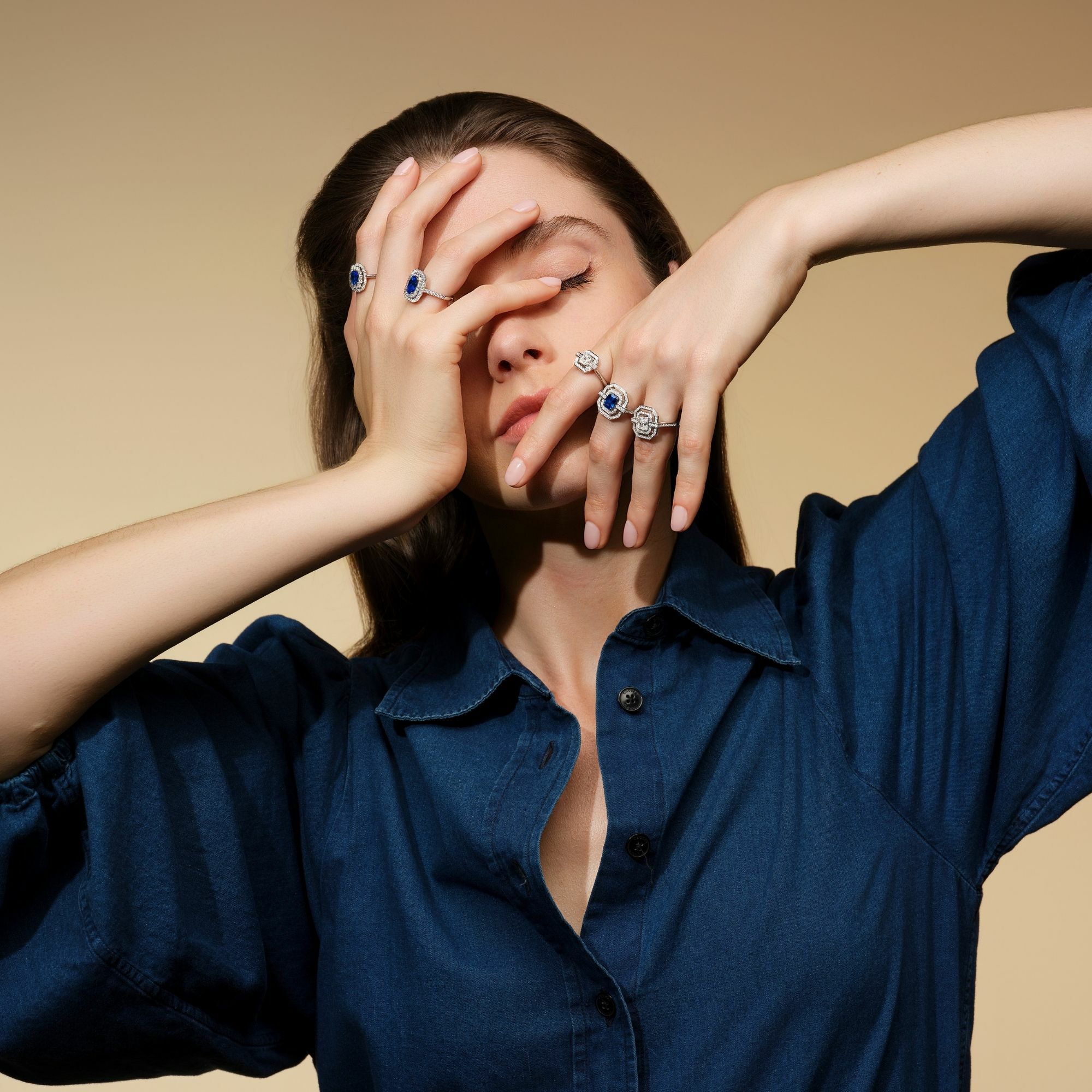 Bague Misia en or blanc, diamant aschercut et diamants.