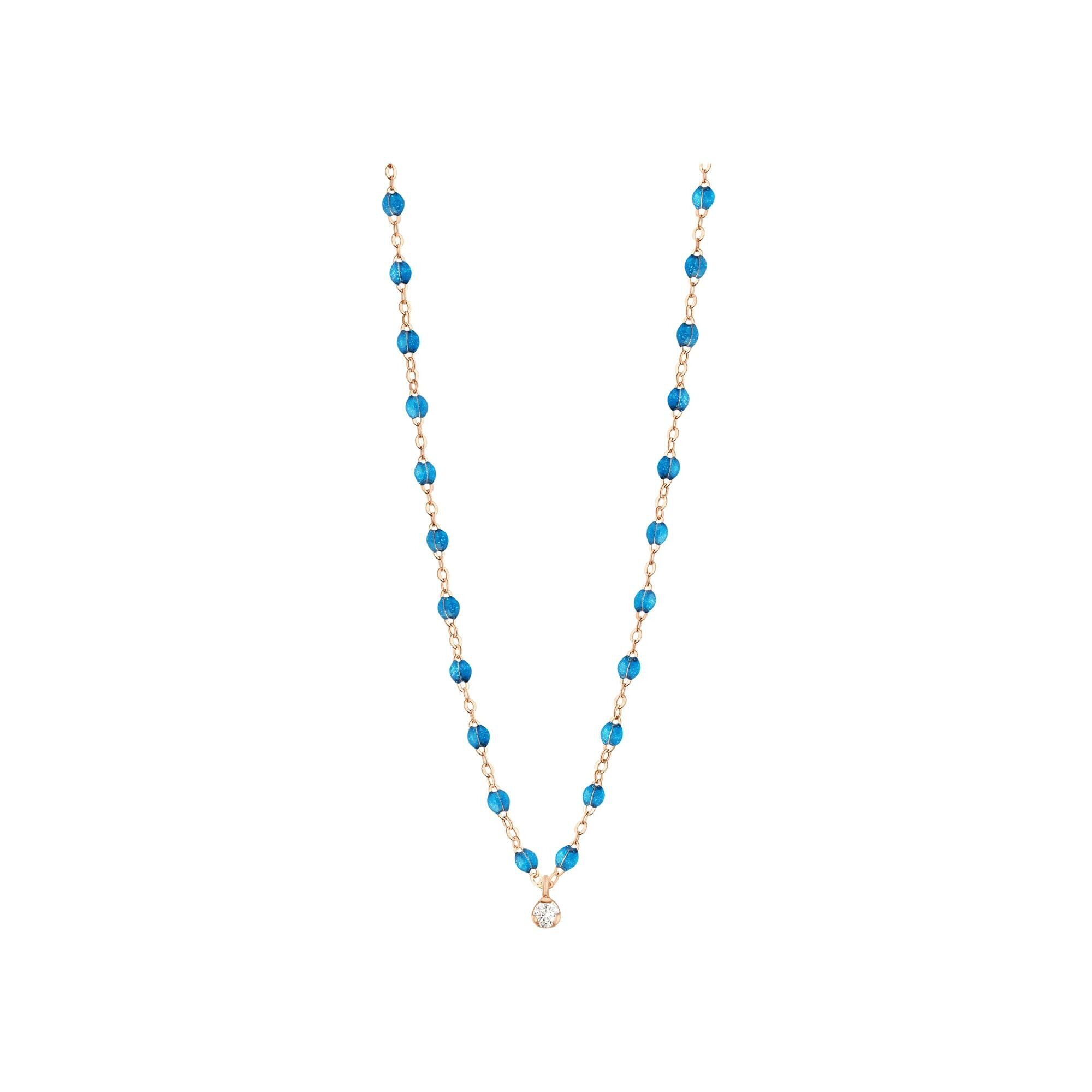 Collier Gigi Clozeau Gigi Suprême en or rose, résine azur et diamant, 42cm